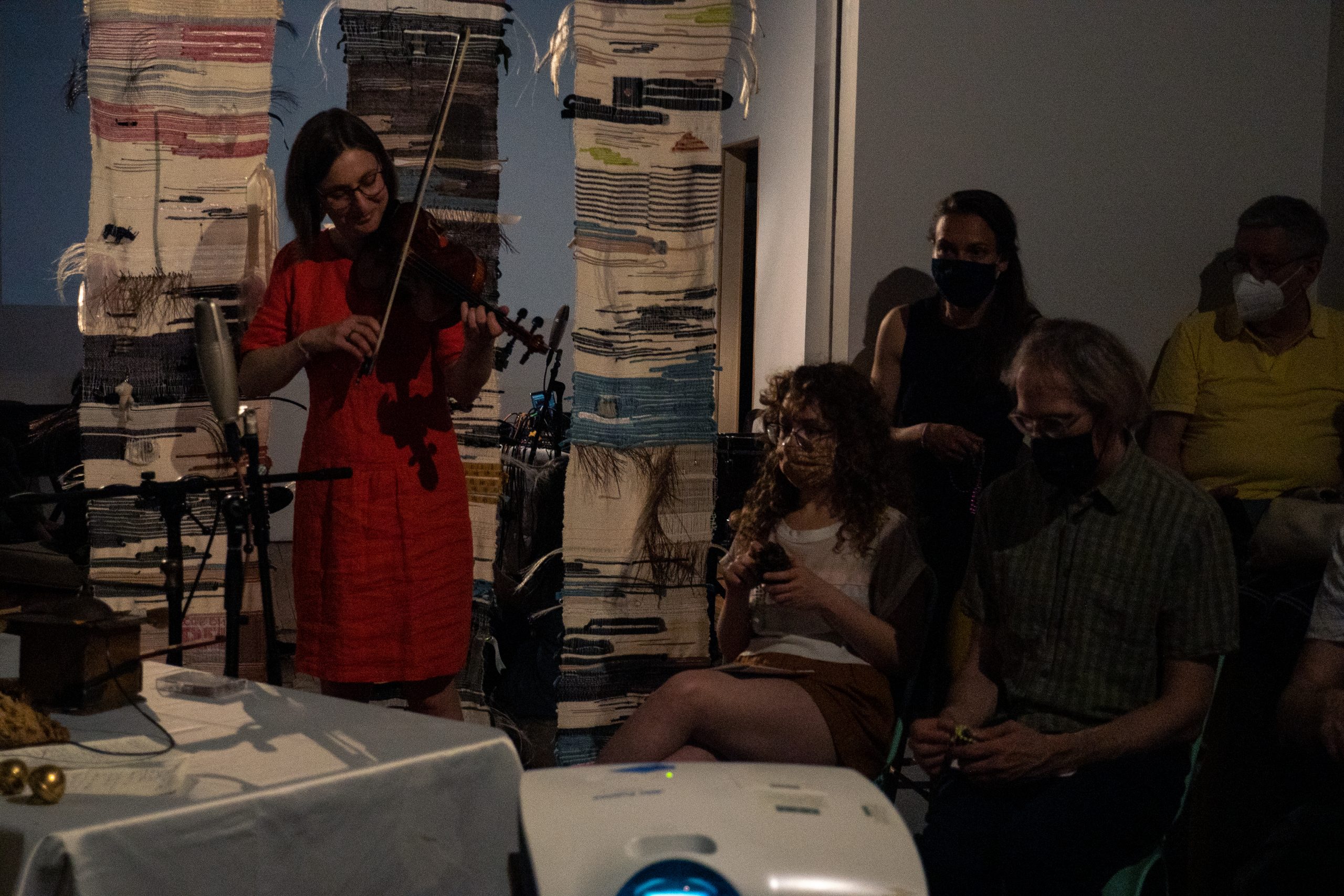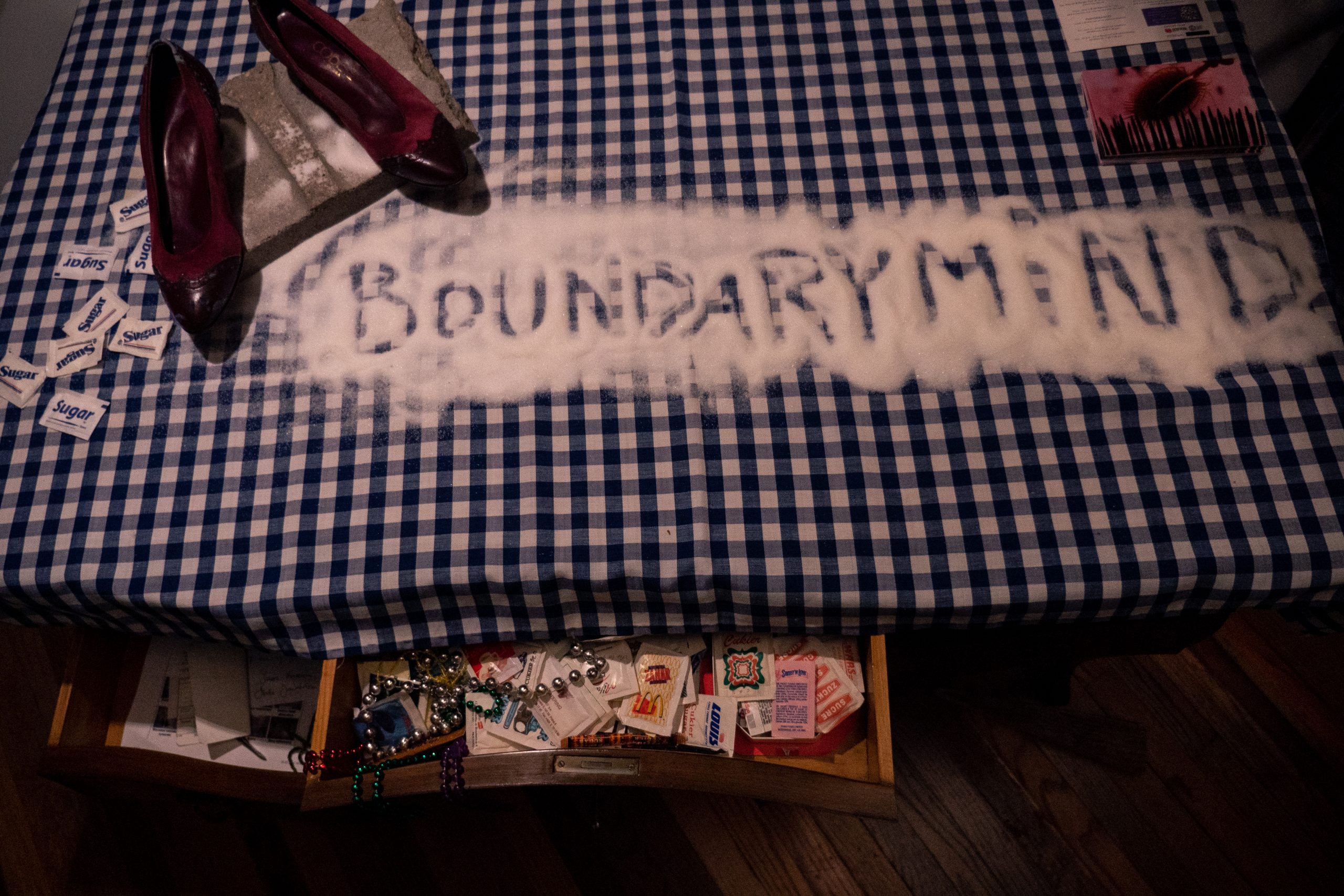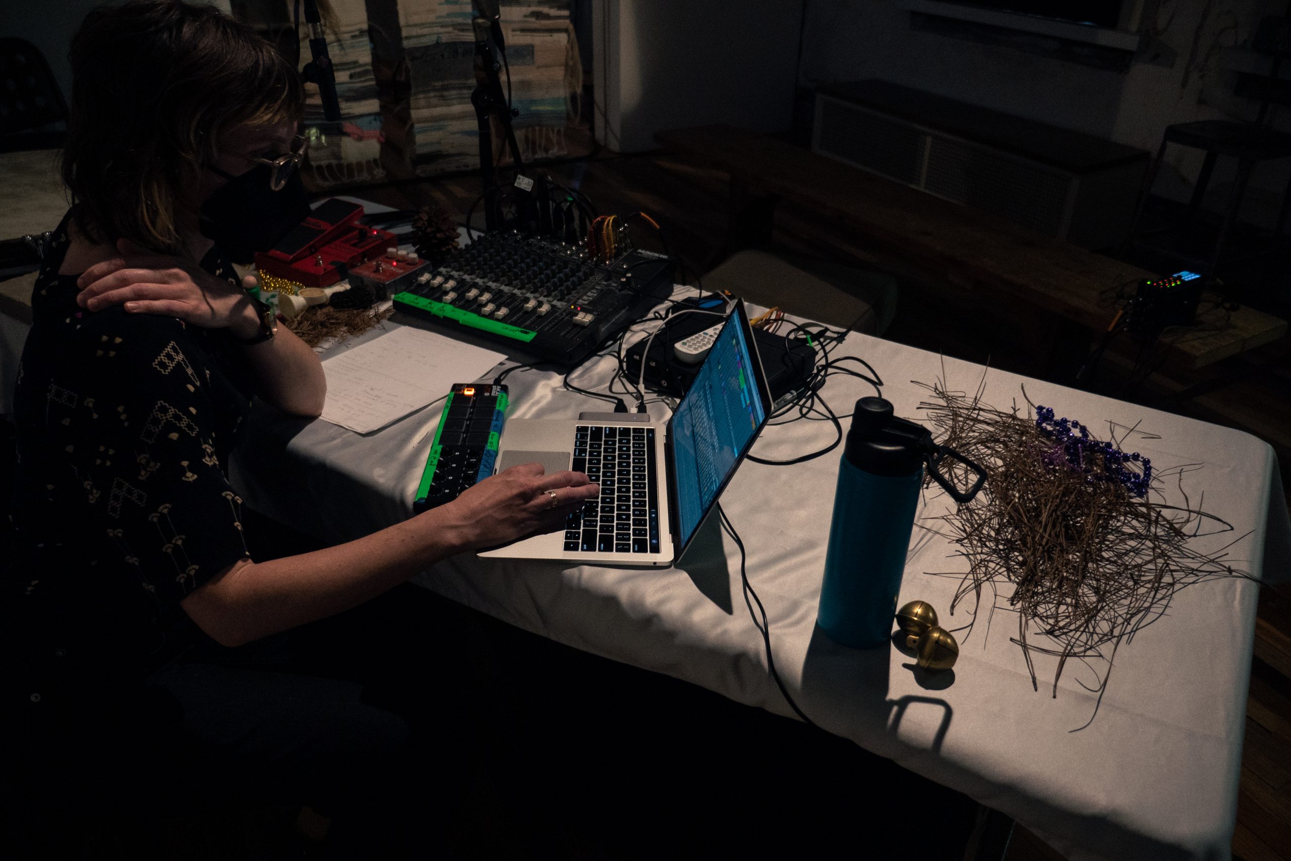 BOUNDARYMIND is a long-distance collaborative project by Linda Jankowska and Katherine Young. The evening-length electroacoustic sound piece and aggregating multi-media installation explores and transgresses the geographical, cultural, psychological, and musical boundaries that impact how we share—and modulate—our past, present, and future selves through collection and interaction with our material world. Every-day objects with sentimental meaning and memory-evoking power have been shared—recorded and remixed, filmed and animated, collected and woven into a three-dimensional tapestry. When the piece is fully realized—performed and installed for in-person experience—these objects and sounds, weaving by Molly Roth Scranton and film by Kera MacKenzie, are installed into an immersive space, and audience members are invited to contribute their own objects-memories-sounds. In 2021 we released aspects of the work into the world through a storefront installation at Roman Susan in Chicago, online performances at ESS Quarantine Concerts series and SEAMUS conference, and a Call-for-Home Recordings disseminated via the Internet and radio stations.